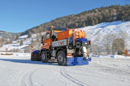 The salt spreader can easily be transformed into a complete brine solution sprayer or into a pre-wet combi spreader that moistens the spreading material. Integrated tanks in the double walled hopper body holds up to 330 l of liquid. The spreader can optionally be equipped with a 2 meter spray bar or a hose reel with handheld spray nozzle.