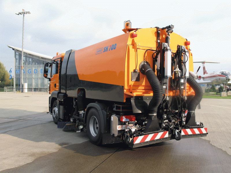 Tovornjak za pometanje SK 700 ima impresiven zbiralnik odpadkov 7,0 m³ - posebej zasnovan za hitro čiščenje podeželskih in mestnih cest. Ta serija je primerna za vsa običajna podvozja tovornjakov z dovoljeno skupno maso 18 t. Zahvaljujoč paketu za zmanjšanje hrupa, SK 700 lahko uporabljate tudi med 22. in 6. uro. Ta stroj je seveda primeren tudi za enostransko in dvostransko pometanje.