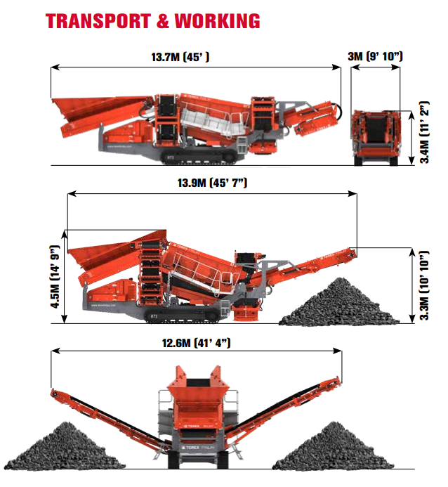 Terex Finlay 873 je idealen primerek za obdelavo agregatov, peska in gramoza, topnih tal, gradbenih ruševin in recikliranih materialov. Ta zelo vsestranski stroj lahko napajamo preko traku, drobilca ali s pomočjo nakladača oz. drugega primernega gradbenega stroja. Stroj ima zmogljivost obdelave do 450 ton na uro.