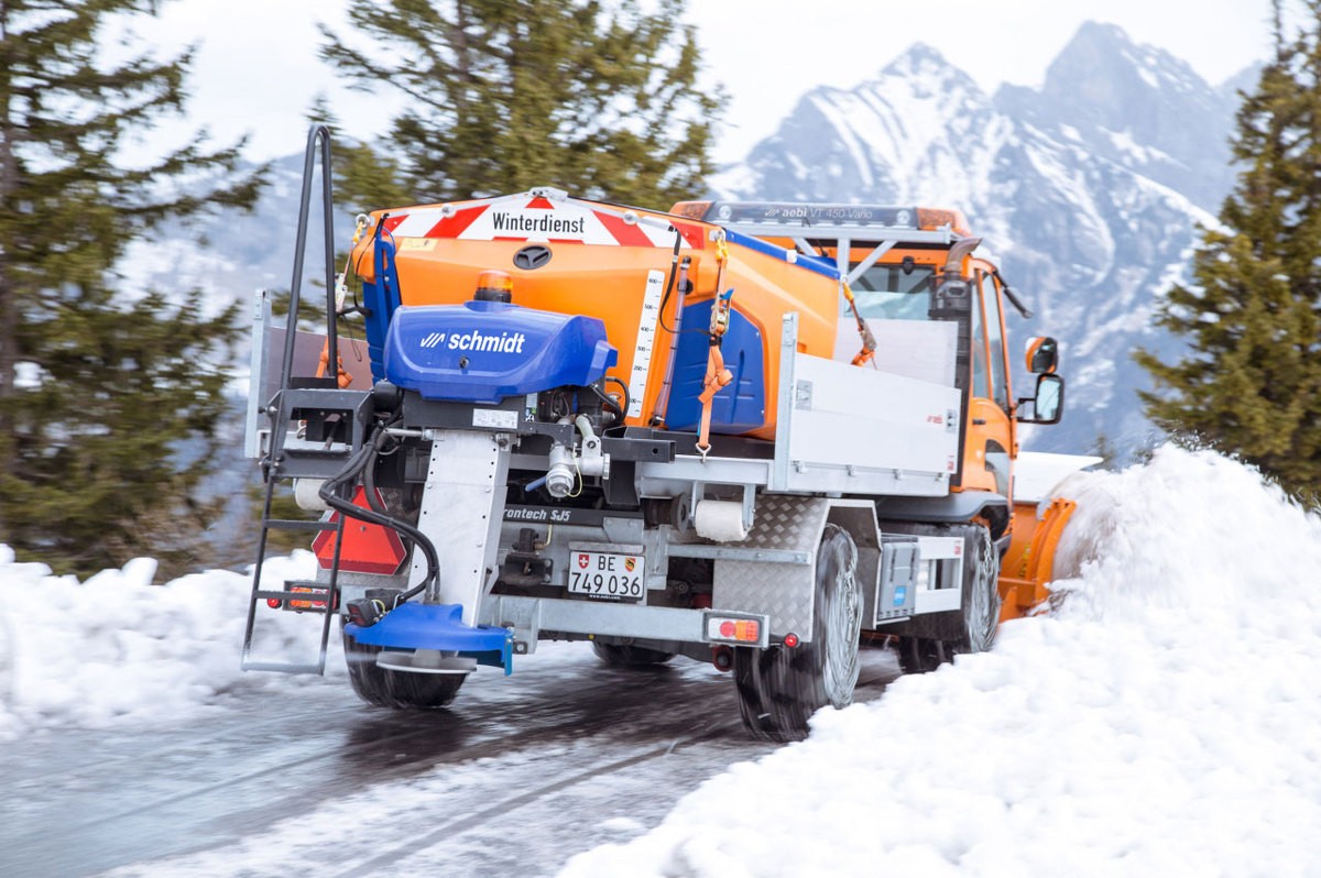 Posipalec je opremljen z vgrajenim vsestranskim rezervoarjem za slanico z indikatorjem nivoja tekočine in črpalko za slanico z zaščito pred sušenjem. Za polnjenje in praznjenje je na voljo priključek Storz C na zadnji strani. Pri vklopu slanice (FS 30) se suh material samodejno zmanjša in nastavitve distribucijskega sistema se optimizirajo v skladu s spremembo sestave sredstva za odtaljevanje. Sistem doseže visoko stopnjo natančnosti, zahvaljujoč integriranim senzorjem za primerjavo dejanske in ciljne vrednosti krmilnih zank.